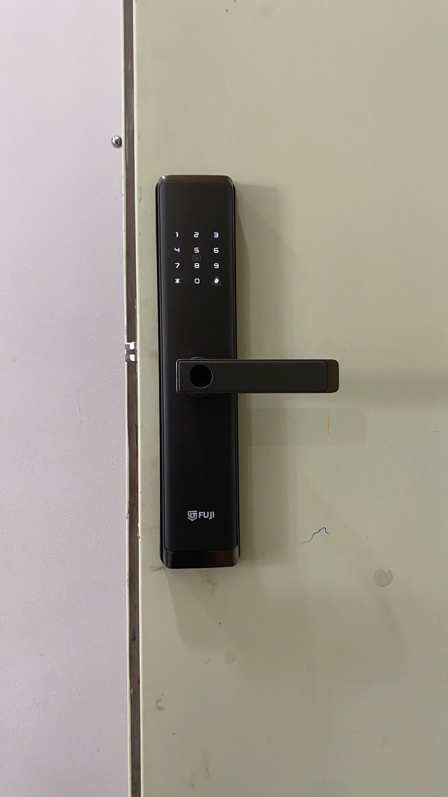 Đây là mẫu khóa “quốc dân” được rất nhiều hộ gia đình tại Usilk City lựa chọn. Fuji FS-A300 có thiết kế tay cầm truyền thống, cảm biến vân tay đặt ngay trên tay gạt nên thao tác mở cửa rất tự nhiên. Khóa hoạt động cực kỳ ổn định, ít hao pin và có mức giá rất vừa túi tiền nhưng vẫn đầy đủ tính năng: vân tay, mã số, thẻ từ và chìa cơ dự phòng.