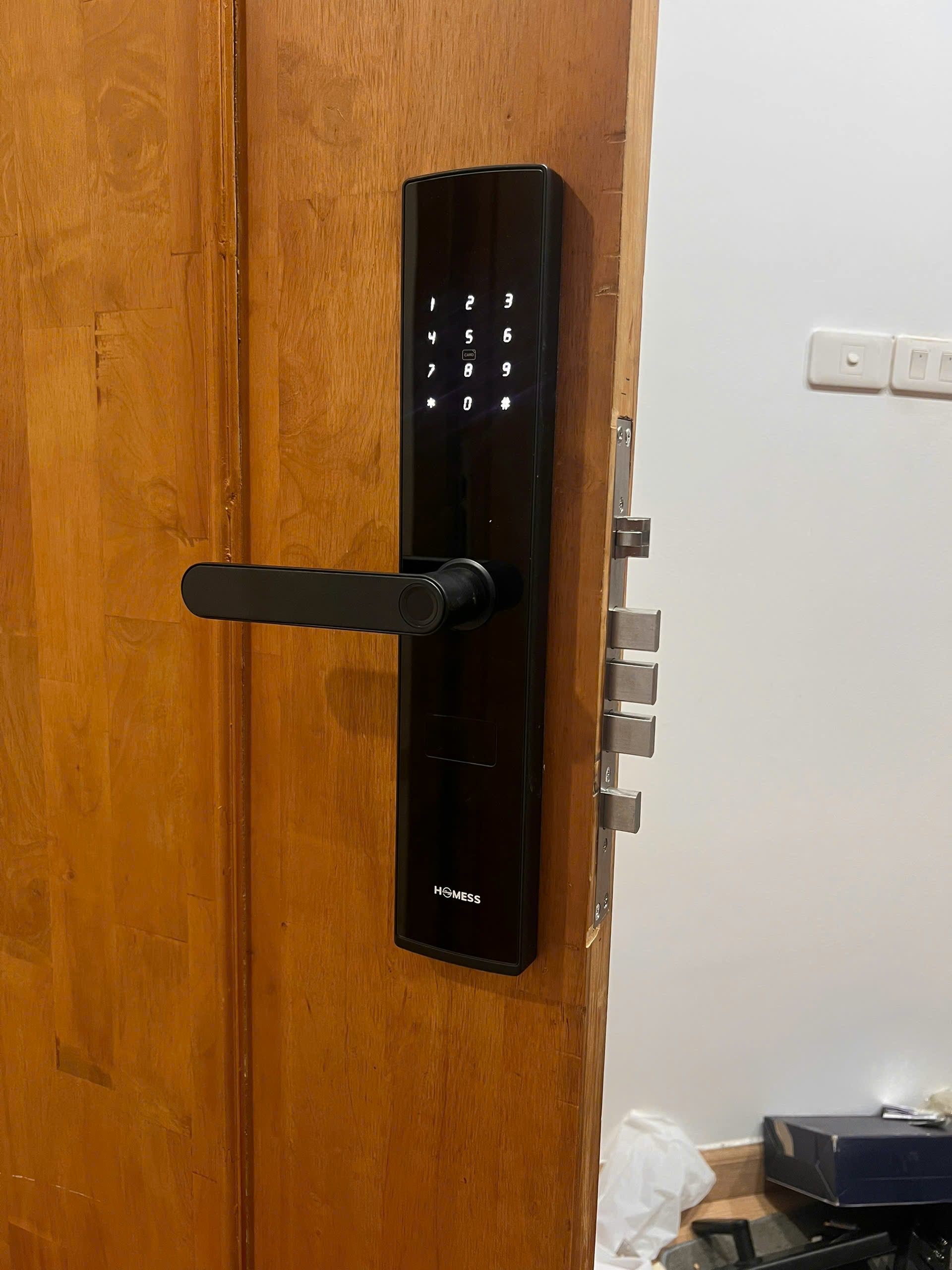 Áp suất đóng mở: Cửa chung cư thường có gioăng cao su chống cháy khá khít. Homess sẽ tinh chỉnh vị trí miệng khóa để khi cửa đóng lại, chốt tự động sập êm ái, không cần dùng lực đẩy mạnh gây ồn.